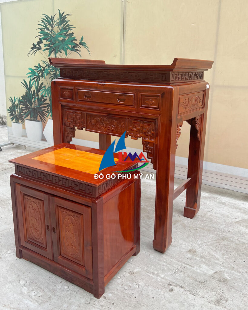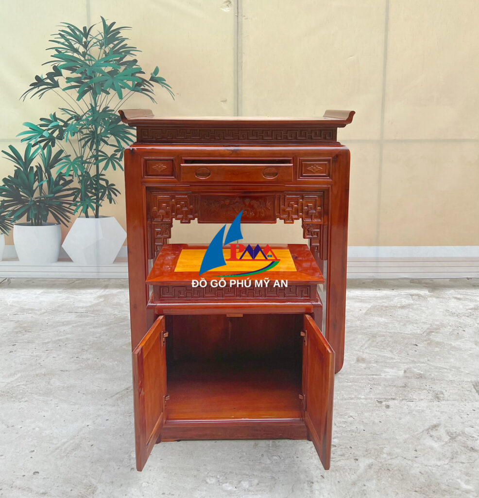 - Thiết kế đa năng: Kết hợp với tủ, án gian cung cấp không gian lưu trữ đồ thờ cúng, giúp căn phòng gọn gàng và ngăn nắp hơn.