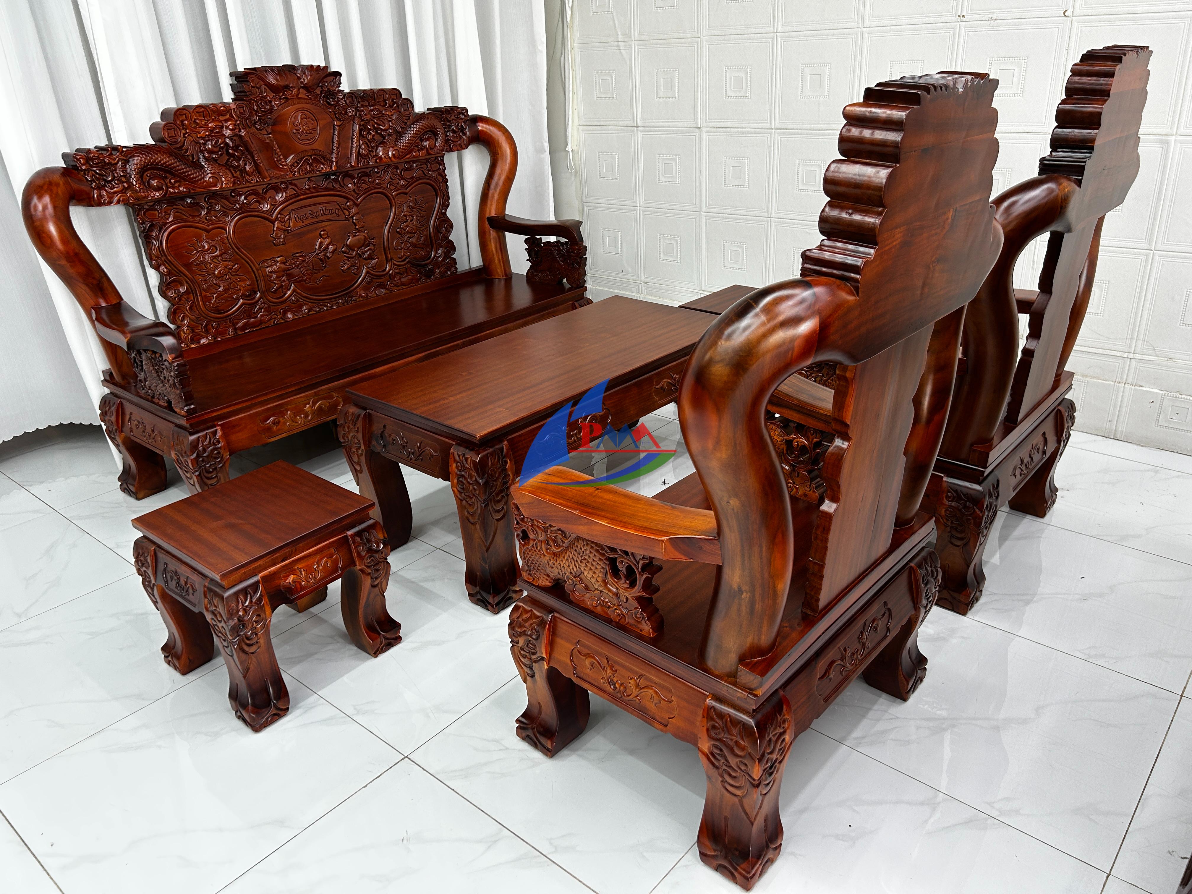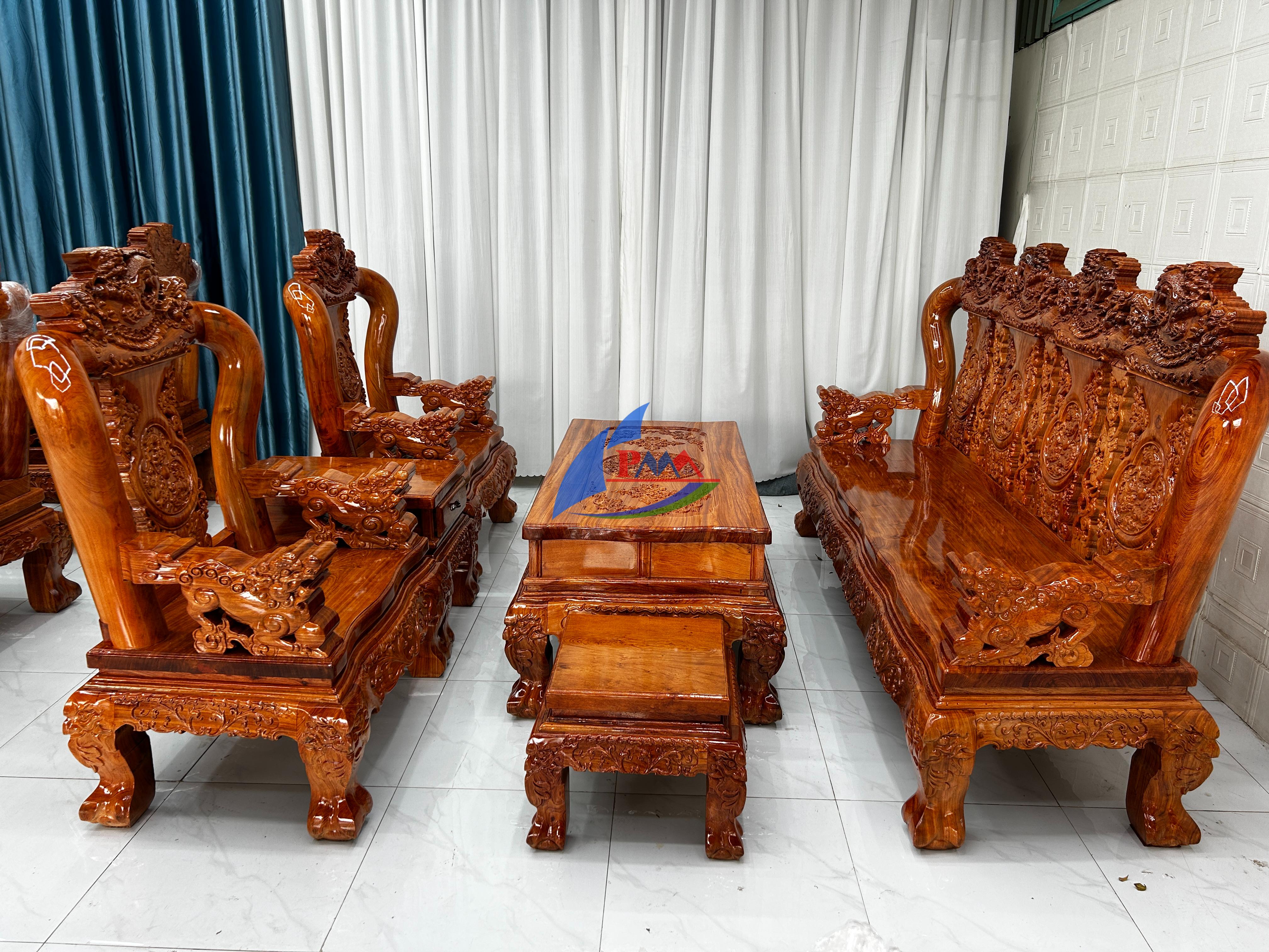 Bàn ghế phòng khách luôn là “trái tim” của ngôi nhà. Các mẫu triện, mẫu nghê, mẫu hiện đại gỗ sồi – gõ – hương đá đang cực kỳ được ưa chuộng.