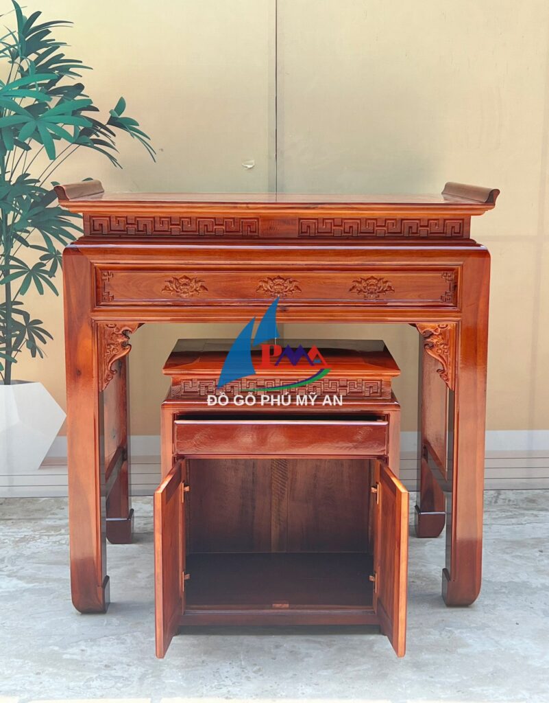 - Thiết kế đa năng: Kết hợp với tủ, án gian cung cấp không gian lưu trữ đồ thờ cúng, giúp căn phòng gọn gàng và ngăn nắp hơn.