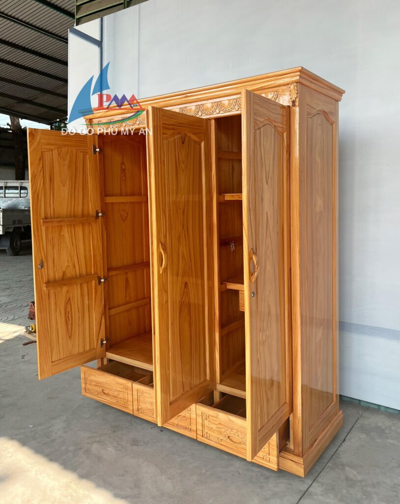 - Việc bảo quản tủ áo gõ khá đơn giản: chỉ cần lau chùi định kỳ bằng khăn mềm để giữ cho bề mặt luôn sáng bóng, tránh tiếp xúc với hóa chất mạnh có thể làm hỏng bề mặt gỗ.