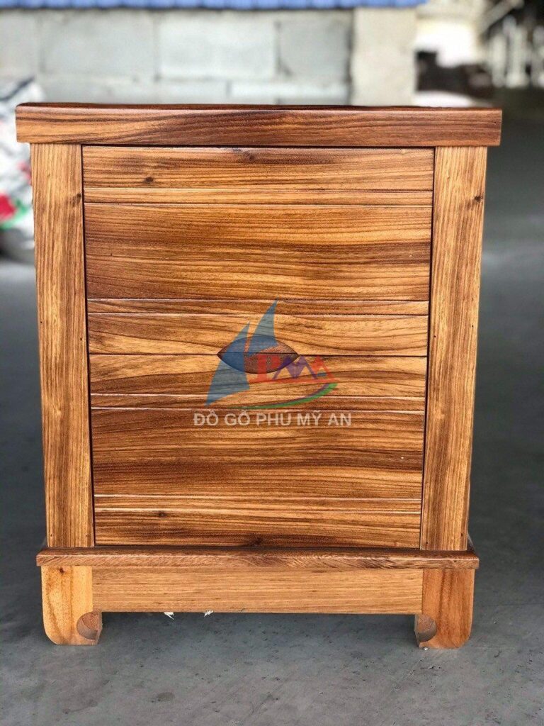 Khung tủ được làm từ gỗ hương xám chắc chắn, có độ bền cao, khả năng chống mối mọt và cong vênh. Bề mặt gỗ mịn màng, được xử lý tỉ mỉ để tạo ra màu sắc xám tự nhiên, tạo điểm nhấn cho không gian phòng ngủ. - Ngăn Kéo: